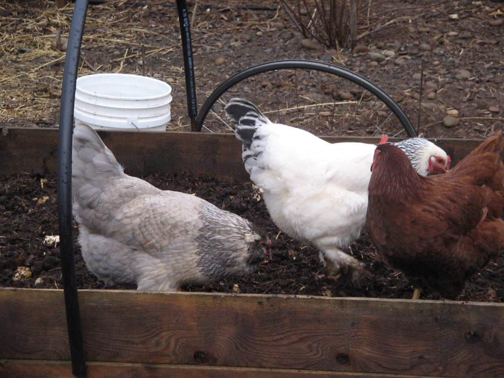 One giant compromise of letting the chickens free-range in our backyard is allowing them to ravage our vegetable beds from